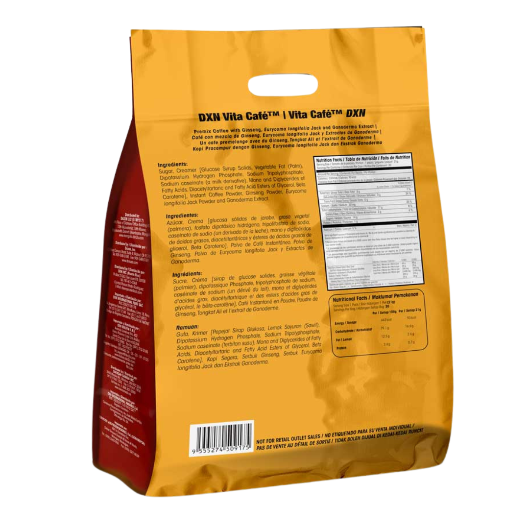 It is conveniently prepared in sachet form for easy daily enjoyment. Simply add one sachet into a cup of hot water, stir well, and enjoy the rich aroma and smooth coffee taste of DXN Vita Cafe.